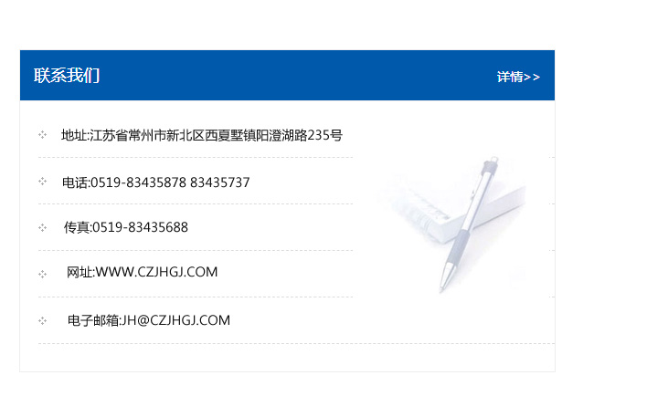 傳真:0519-83435688    郵編:213135    網址:WWW.czjhgj_com.czhmzxyy.com    電子郵箱:JH@czjhgj_com.czhmzxyy.com